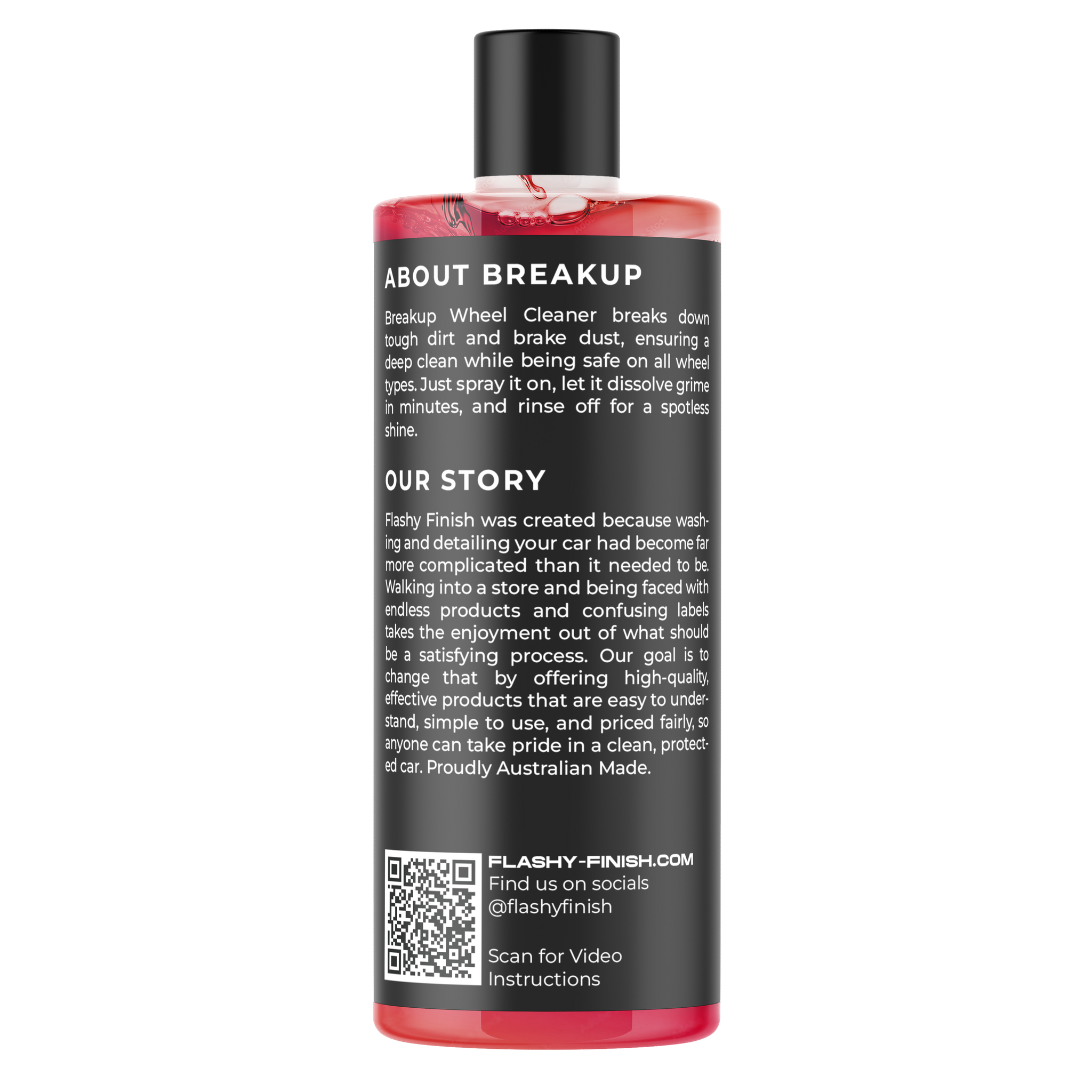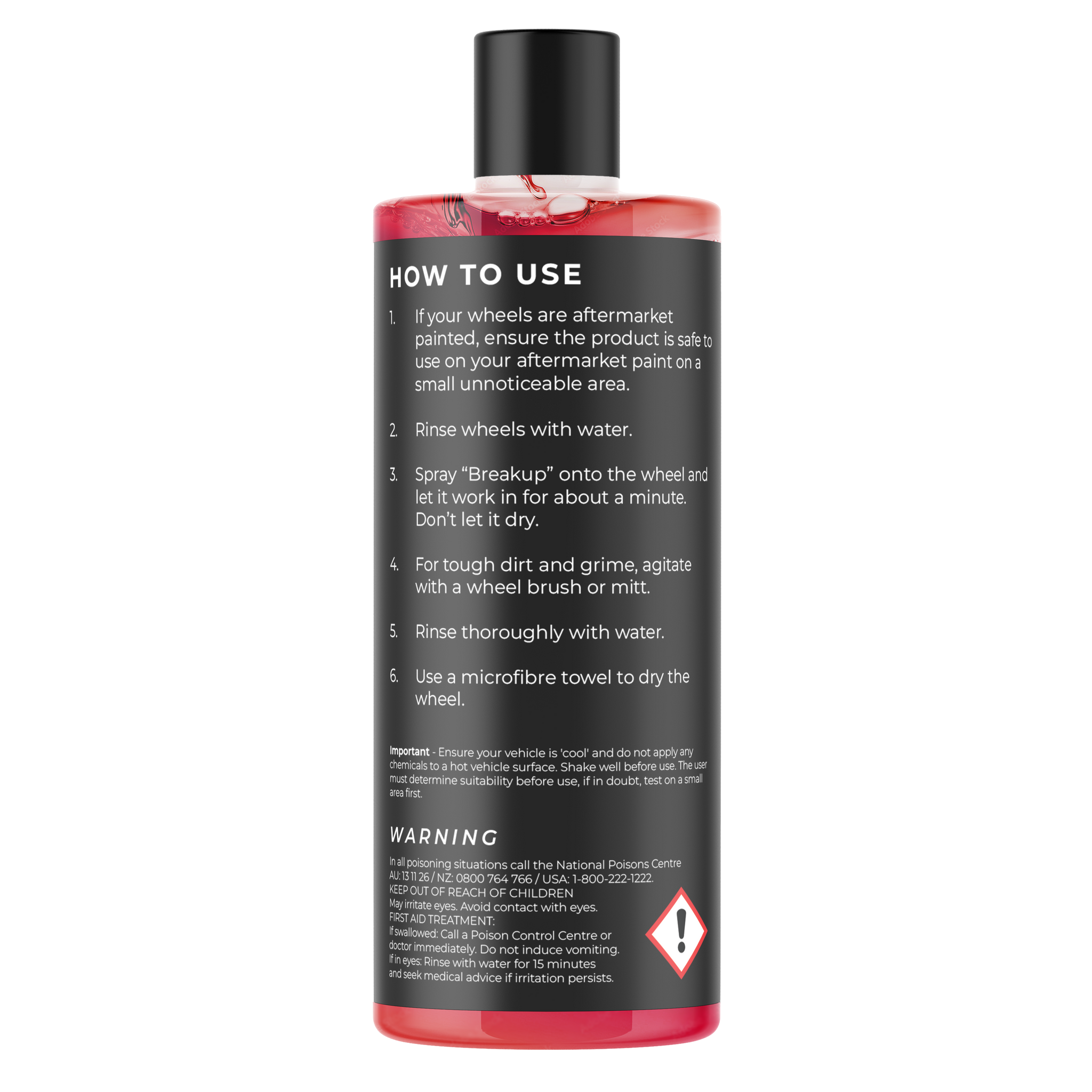 Breakup Wheel Cleaner breaks down tough dirt and brake dust, ensuring a deep clean while being safe on all wheel types. Just spray it on, let it dissolve grime in minutes, and rinse off for a spotless shine.